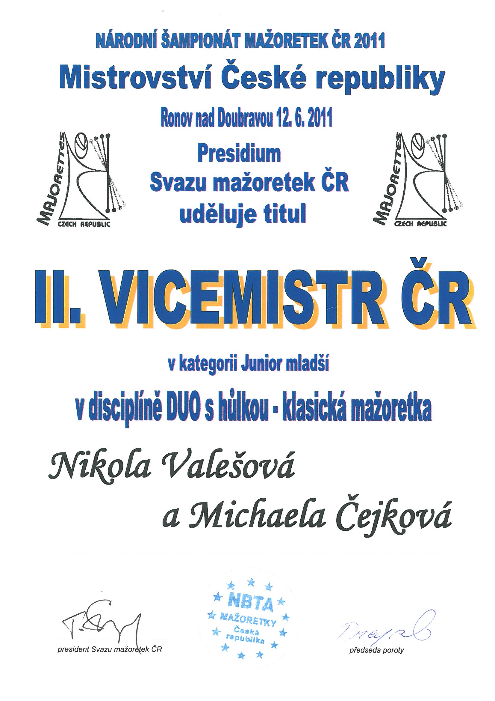 II.VICEMISTR České republiky - Míša Čejková a Nikča Valešová