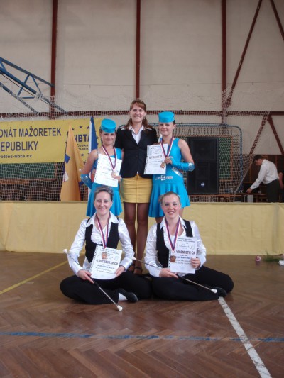 3.místo patří také naší sólistce Nikči Valešové v ktg. sólo junior a dále 3.místo a bronzové medaile přivezly také Marťa a Katka, a to z disciplíny twirlingové, za což jim patří  i ode mne veliký obdiv a dík. Všechna děvčata mají titul II. Vicemistryně České republiky a já jim ještě jednou touto cestou gratuluji.