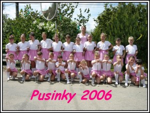 Naše malé mažoretky vznikly v listopadu roku 2005 pod vedením Ivany Ondrovičové, která vybojovala v roce 2004 titul „MISTR ČR“ v disciplíně pochodové duo. Mažoretky cvičí pod záštitou Hudebního divadla GLOTTIS, pod vedením Vojty Polanského ml. Jakmile se rozběhl tento kroužek, začali jsme společně přemýšlet, jak se budou naše mažoretky jmenovat, protože jsme je pomalu připravovali na Národní Šampionát mažoretek. Nakonec jsme se shodli na názvu MAŽORETKY PUSINKY. Bylo velmi těžké naučit děvčata, která nikdy hůlku neviděla a ani ji nedržela v ruce, s ní cvičit, ale povedlo se…. Nejdříve jsme pilně půl roku drezůrovali pochodování, které je nezbytně nutné proto, aby děvčata mohla vystupovat a účastnit se různých soutěží.